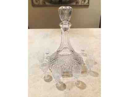 Lenox Crystal Decanter and Vintage Waterford Crystal Cordial Glasses
