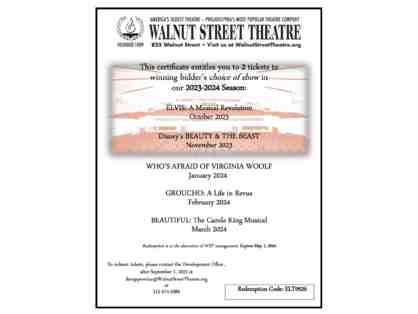 2 tickets to Winning Bidder's Choice of Show @ Walnut St. Theatre in Phi