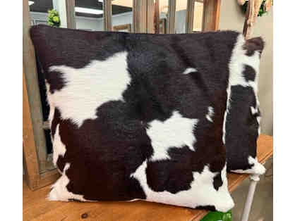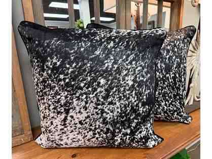 New Pair of 22"x22" Black & White Cowhide pillows