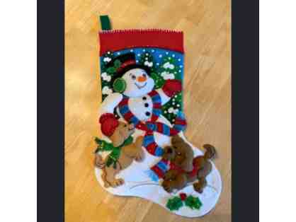 Christmas Stocking "Snowman and Puppies"