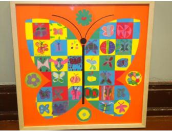 Description of Project: Students explored their personal sense of design by putting their imaginations to work in creating individual butterflies and flowers using various color, textures, and designs. Each student’s particularity shines through his or her butterfly. All of the butterflies then created the wings of the larger butterflies, exemplifying the idea that individual works oftentimes complement each other when put together to create a unified idea. This fanciful piece would add a burst of color, spirit, and hope to any room!