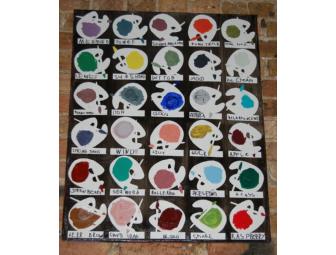Project Materials/Description: Ms. Whitney's Kindergartners invented their own brand new colors. They mixed acrylic paints and then named the colors according to their own artistic perspectives and life experiences. "That's not 'GREEN', it's 'HULK'!" "Of course that 'PINK' should be renamed 'BALLERINA'!" The kindergartners then used their new colors to paint the edges of the artwork. Check out this unique new palette of our 5 and 6 yr olds. Great for any wall that needs a splash of color.