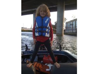 Enjoy a boat ride on Mission Creek, located just off 3rd Street/ Dogpatch in San Francisco. Your tour guides, Olivia Lytle's parents, will give you an hour long tour by Boat of Mission Creek House Boat Community. Tour for two adults and two Kids. Life Jackets included.