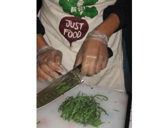 Show off your commitment to local food in the kitchen or at the grill with your very own Just Food Apron - for every one that you buy, we will provide one apron to a Just Food Community Chef to wear while they conduct Cooking Demonstrations at Food Pantries and Farmers Markets. These aprons help our Community Chefs look their best while they work hard to bridge the gap between access to healthy food and improved nutrition by teaching New York City families to cook farm fresh produce.