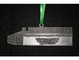 This beautiful pewter ornament commemorates the successful completion of the school's new building addition - a vital upgrade that St. John's students will enjoy for years to come!