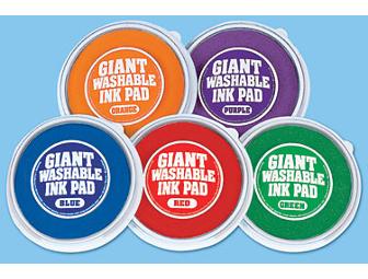 What could be more fun than stamping impressions with our giant-sized ink pads—they’re big enough for apples, leaves, even kid-sized handprints! Jumbo pads hold lots of vivid color, and the ink is fully washable for easy cleanups! Set of 5 stamp pads in the 5 colors shown. Each ink pad measures 6" in diameter.