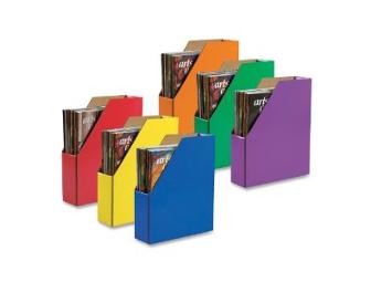 Store and display your magazines and books with these durable corrugated holders. The coated finish helps protect them during daily use. Assorted pack of red, yellow, blue, orange, green and purple. Recycled and recyclable.