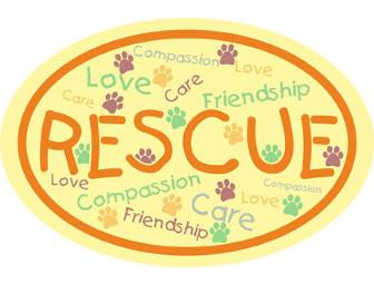 4”x 6” Tan oval magnet with brown writing saying "RESCUE". This magnet is 30 ML thick with UV Protection and it is made to stay and shine for years.
