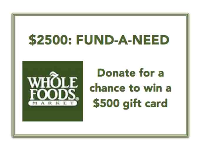 All participants in our fund-a-need campaign will be automatically entered to win a $500 Gift Card to Whole Foods Market.