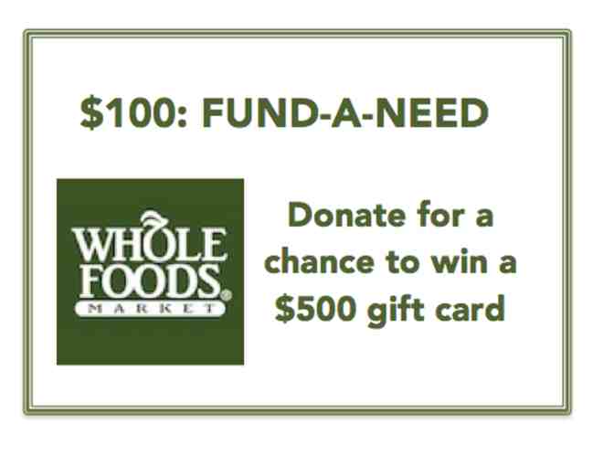 All participants in our fund-a-need campaign will be automatically entered to win a $500 Gift Card to Whole Foods Market.