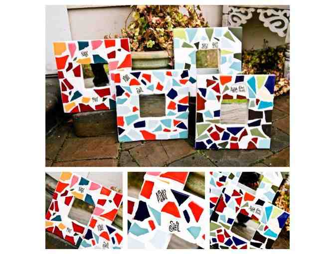 These hand-tiled mirrors with beautiful multi-colored mosaic tiles are hand-lettered with each individual 6th grader’s name. This custom piece will add charm to any area of your home. $35 per mirror