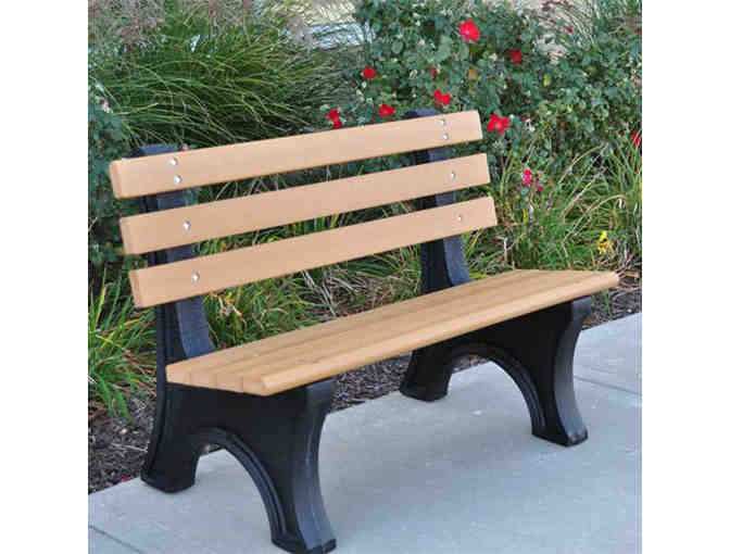 This classic park bench has been given a modern overhaul. The classic, sleek park bench design is made of 100% recycled plastic that is eco-friendly and it's made in the USA. It's durable enough to be commercial-quality so it will last well into the future. Maybe best of all, this recycled park bench is maintenance-free!