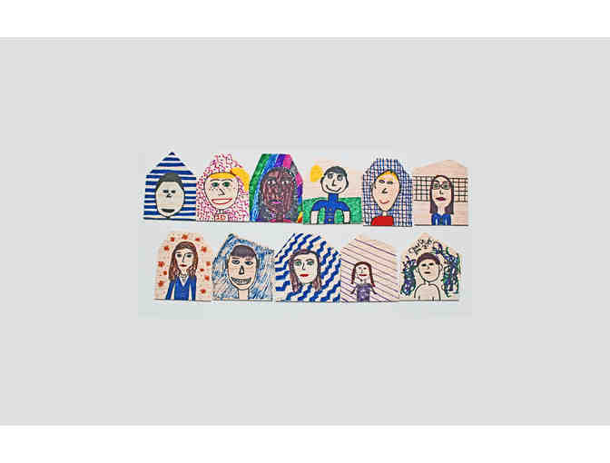 Each child decorated a balsa wood house in the style of their grade's artist. In lieu of a single class project to be auctioned, we have then taken your child(ren)s balsa wood house(s) and adhered them to custom cut matboard. (Available for purchase under "Custom Family Vignette" for $30.) Before creating the Vignettes, each grade's houses were grouped and photographed together as neighborhoods, and posters were created for each grade. You can buy a copy of your child's grade's poster for $30. (Or you can buy a copy of any grade's poster for that matter!!)