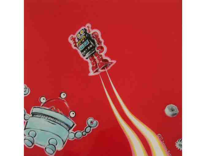 “Letting go is part of the fun. On impulse, I added a robot to one of my paintings, and now robots have taken over my work. Whether art makes you smile, or reaches you on a deeper level, my goal is to make a connection.