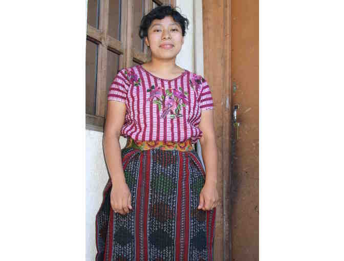 The attached photo is of Josefina, a high school scholarship recipient and the daughter of Dolores, a MayaWorks kippot crocheter.