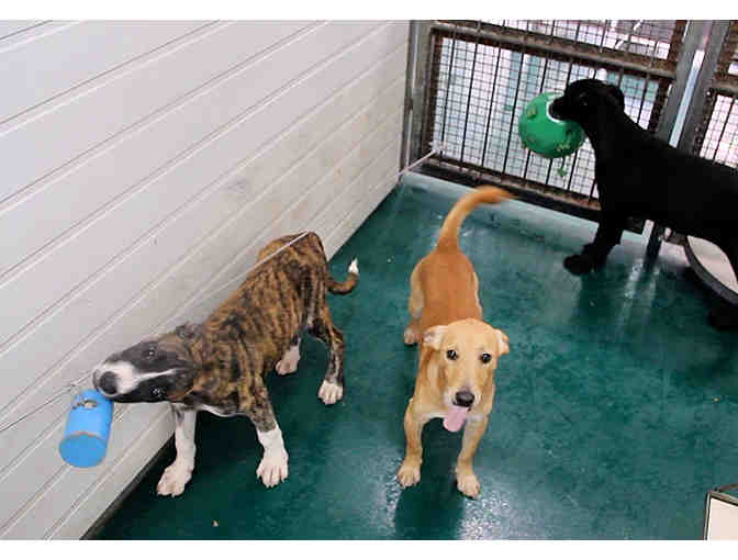$100 gives 25 shelter dogs a tough chew toy to help decease stress and noise. If they are busy chewing on a toy then they are not barking!