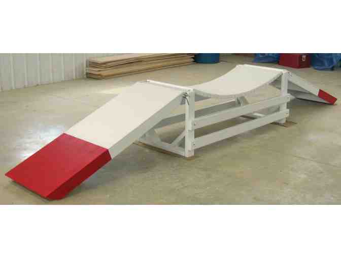 Have you ever walked across one of the rope or pontoon bridges at Disneyland? With a little bit of encouragement, it can teach you that a little bit of movement under-foot isn't such a scary thing. And, in fact, can be a whole lot of fun! Well, that's just what our puppies will be learning as they walk across this sway bridge. The bridge will help develop better muscle control, coordination, confidence and overall soundness... and all they'll know is how much fun they're having!