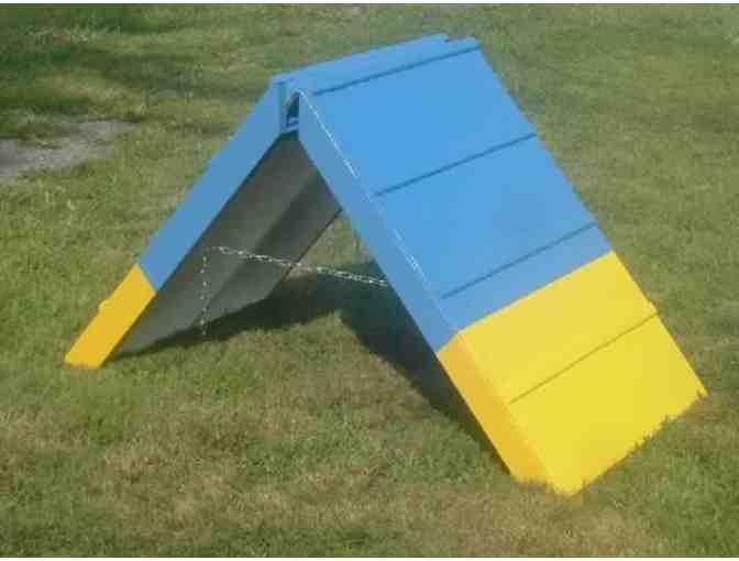 Have you ever watched roofers when they are working? A job best left to those with who are sure-footed and have a good sense of balance. And, that's just what our puppies will be developing as they climb their way over this A-Frame. The A-Frame will help develop better muscle control, coordination, confidence and overall soundness... and all they'll know is how much fun they're having!