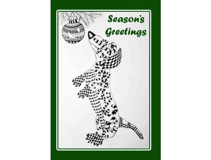 These Christmas cards feature beautiful artwork by Linda's Doxie Tangles and benefit LPDR! This is a set of twelve (12) Christmas cards with envelopes for mailing. Cards are blank inside.