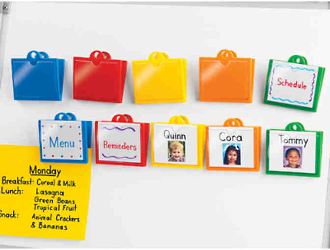 Our large-size clips can be customized any way you like—and are perfect for organizing busy classrooms! The super-strong magnetic clips have a clear window in front—so you can label them with classroom activities, student names...you can even add children’s photos! 3 1/4" plastic clips come complete with blank slip-in labeling cards.