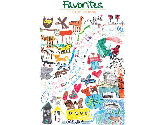 Sport a custom t-shirt created from our second graders' original drawings. Choose from the "Peace & Love" design or the "Favorites" or why not both? This item is for the "Favorites" design