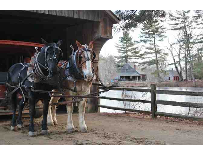 Daytime admission passes for six people for Old Sturbridge Village in Sturbridge, MA. Old Sturbridge Village, the largest outdoor history museum in the Northeast, depicts a rural New England town of the 1830s. You are invited into more than 40 original buildings, including homes, meetinghouses, a district school, country store, bank, working farm, three water-powered mills, and trade shops - all situated on more than 200 scenic acres. You can meet heritage breed farm animals and interact with authentically costumed staff.