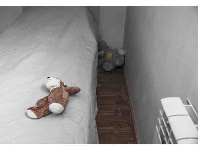 This is Gayane's bed, and these toys are her friends, she says.