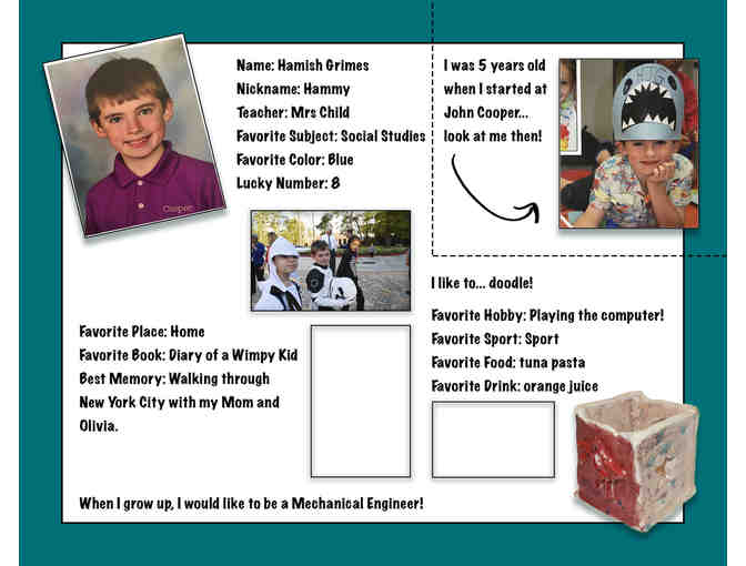 Get to know all the 4th graders as they share their thought about their favorite things. As they have grown, our kids have figured out what they like (and what they don't!) and they are willing to share their thoughts in a memory book of their 4th grade year.