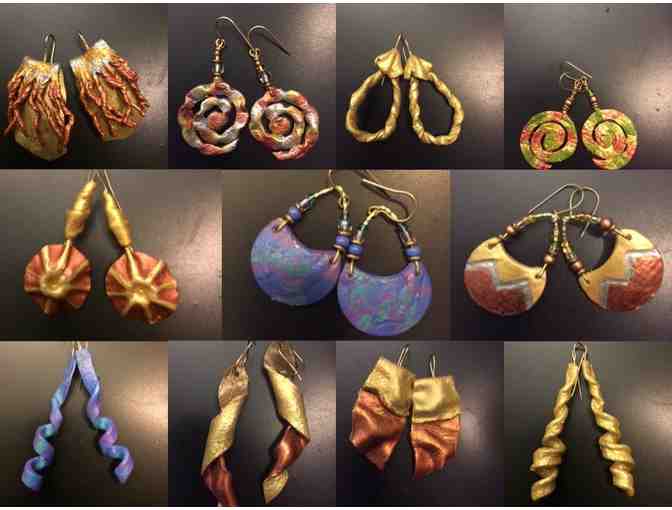 Unique Designs in Leather artist Vernell Jordan has generously donated an assortment of hand-sculpted leather earrings to our auction. They are available on a Buy It Now first-come-first-served basis. All are hand-scupted leather, hand-painted with gold-filled ear wire.