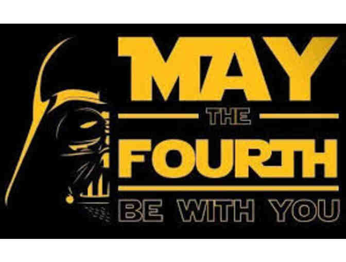 Join the Vanderbergs in your best Star Wars attire for a family party with food, drinks (Blue Milk! Yoda Soda! Dark and Storm Troopers!), games and movies! There will be lightsaber battles in the backyard! Will the Dark Side prevail? Star Wars Trivia for prizes inside! It's a party sure to be out of this world!
