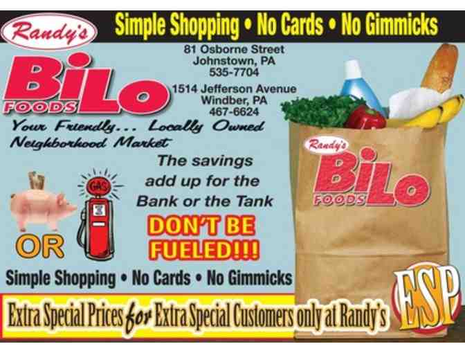 A $25 gift card for Randy's Bi-Lo, "Your Friendly Neighborhood Market". Good at either the Windber or Johnstown, Pennsylvania locations.