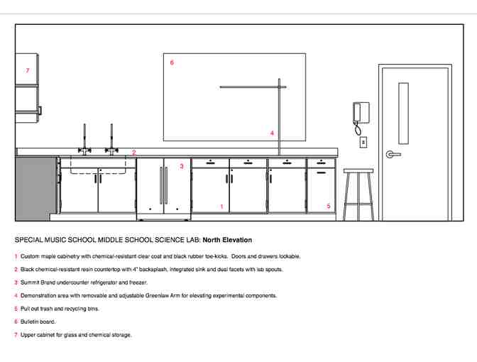 Designer and 5th grade parent, Brad Linard, has designed a first rate science room for the SMS middle school. The renovation will be extensive and expensive (approximately $50,000+), but the finished space will be stunning, state-of-the-art and is guaranteed to benefit SMS students for years to come.
