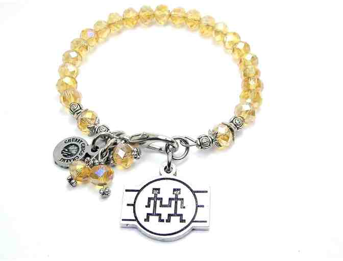 Gold crystal bracelet featuring a Camp PARC Est. 1960 charm. Bracelet and charm are made in the USA.