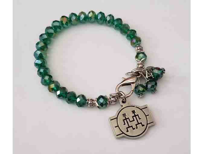 Blue/Green crystal beaded bracelet with Camp PARC Est. 1960 charm. Handmade in the USA.