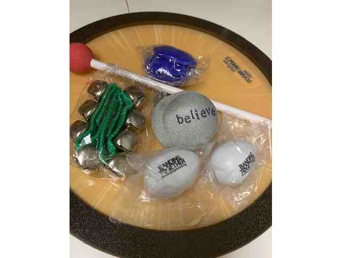 Your donation enables us to provide an instrument kit for a music therapy scholarship recipient! This kit enables them experience music making in their home during their online music therapy sessions. Items in the kit include two shakers, a hand drum, mallet, wrist bells, two castanets, a lavender squeeze stress ball and scarf.