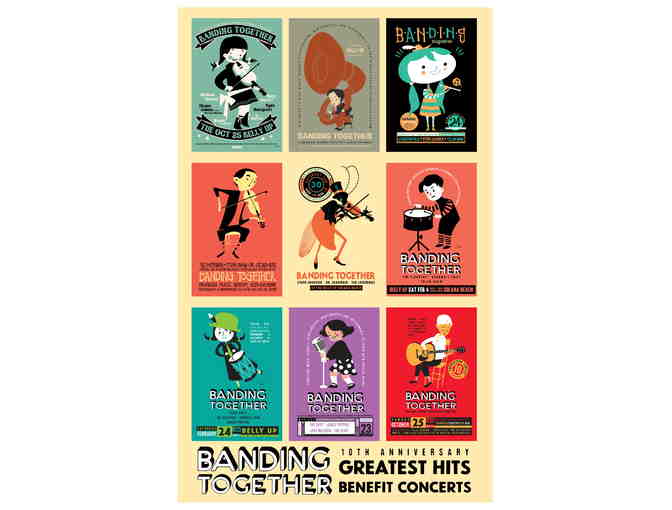Celebrate the Diamond 10th Anniversary of Banding Together with this commemorative poster showcasing the artwork of that the very talented, Scrojo, has done for all of the past Greatest Hits events.