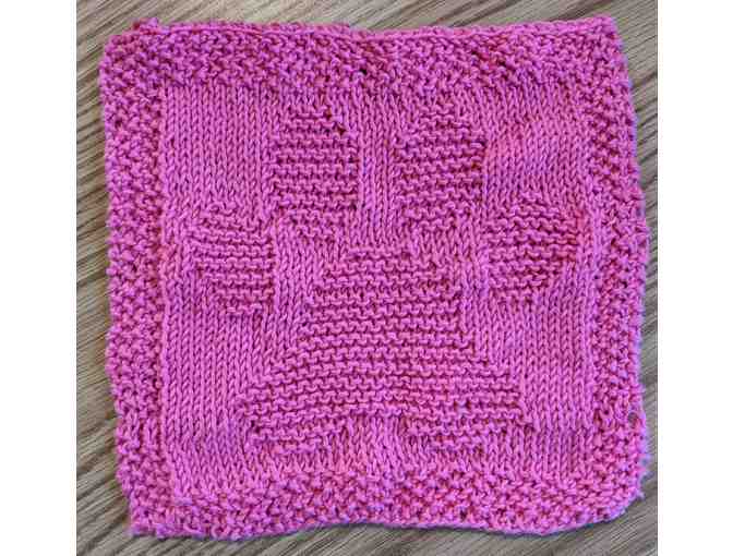 Hand-Knit Pawprint Washcloth - Dark Pink