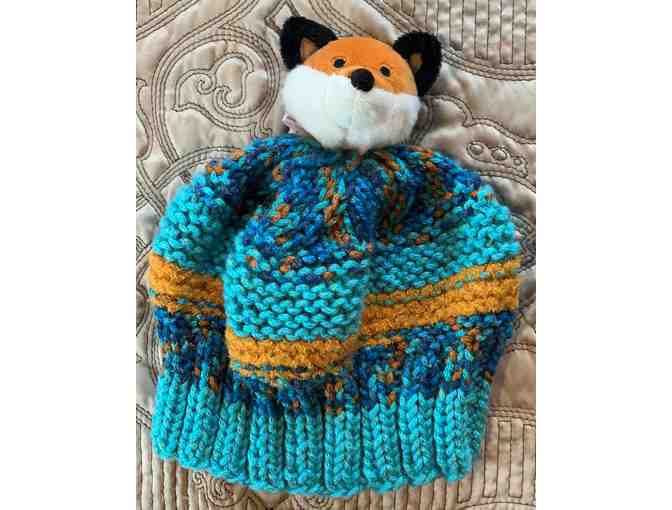 Hand-Knit Child's Winter Hat with Fox Topper