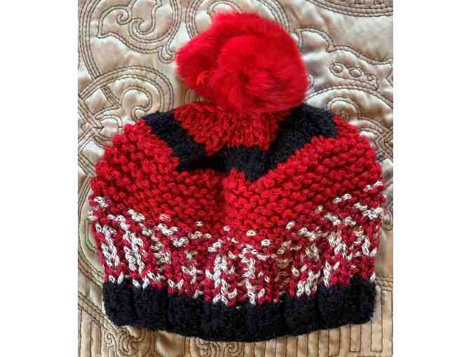 Hand-Knit Baby's Winter Hat - Red Stripe