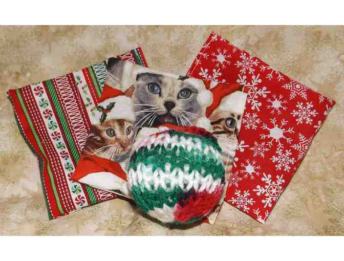 Handmade by local crafter and cat lover Judy Cataldo. Colors/patterns vary.