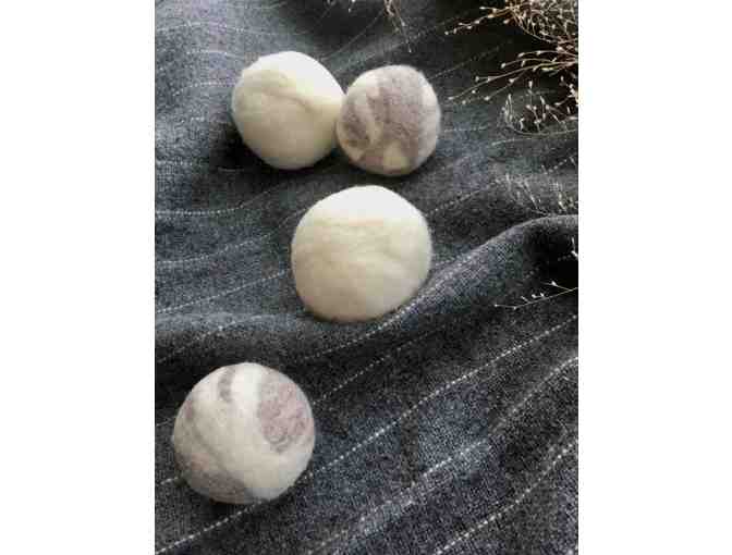 Decrease your drying time and get rid of static with these handmade wool dryer balls. Set of 4 large off-white and off-white/grey dryer balls.