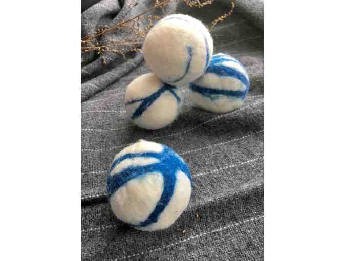 Decrease your drying time and get rid of static with these handmade wool dryer balls. Set of 4 large white/blue dryer balls.