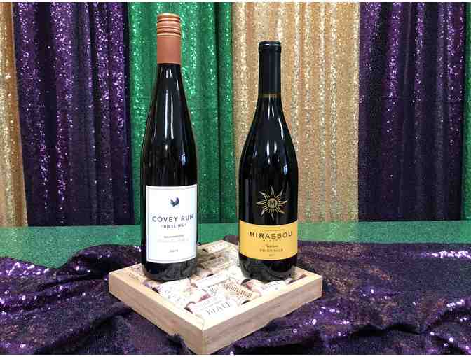 A BOTTLE OF MIRASSOU PINOT NOIR AND WINE CORK TRIVET MADE BY FRED COATS