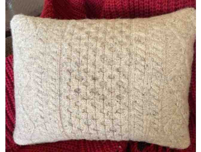 Decorate ecologically with this grey repurposed wool pillow with cotton fabric back. Comes with a plush poly insert.