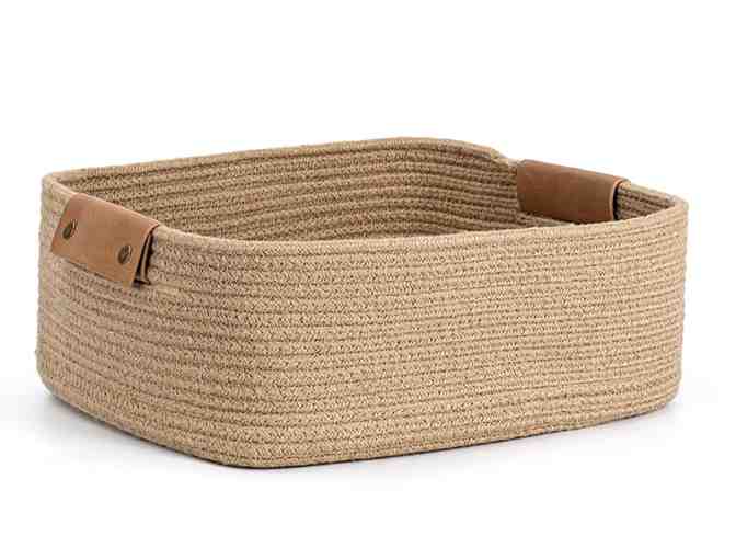 Rectangle Jute Rope Woven Basket with Handles for Books, Magazines, Toys - Decorative Rectangle Basket made with High-quality materials - Made of natural jute thread woven rope. Our handmade basket has the quality of germ-free, nonpoisonous and no harsh to human skin, please feel easy to use