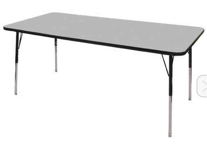 The Rectangle Adjustable-Height Activity Table by Norwood Commercial Furniture® is a colorful addition to any elementary classroom. This scratch- and stain-resistant particleboard table stands up to years of use and is laminated on both sides, so it's a cinch to clean. The swiveling glides protect your floors, and the powder-coated steel legs adjust in one-inch increments to accommodate children as they grow. Choose either a gray top and your choice of four edge band colors or a woodgrain top with black edge banding.