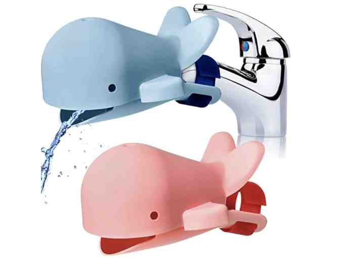 2 piece faucet extender in different color with cute whale shape, easy to attract your little child and make them love washing hand or shower time