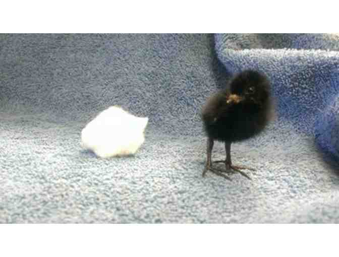 Chick in front of duster by Isabel Luevano. Chick next to cotton ball by Cheryl Reynolds.