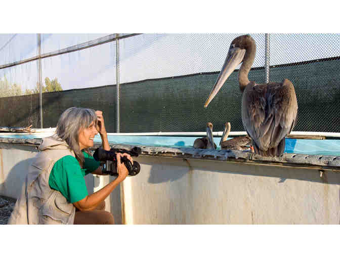 Photo of filmmaker Judy Irving at IBR's pelican aviary courtesy of Pelican Dreams.