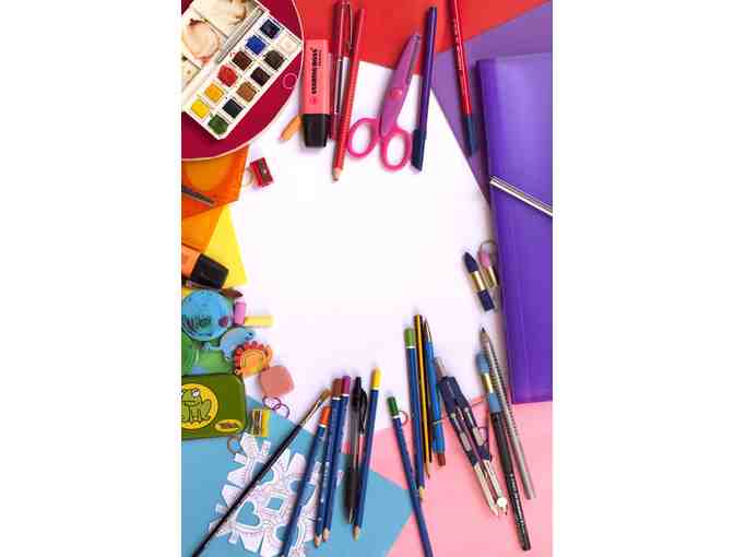 An outdoor, masked gathering for 5th-8th graders on the St. Paul's Lower School playground. Drinks, materials, and printed instructions for different projects provided, including DIY invitations/cards and reuseable party decorations - garlands from felt, yarn, and pom poms, paper flowers, creative birthday cards, and other fun party decor.